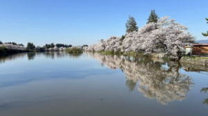 志賀理和気神社の参道入口近くの桜は、京都のある南の方 角に向けて咲くため、「南面の桜」と呼ばれている。地元では古 くから縁結びのご利益をもたらすと伝えられている。