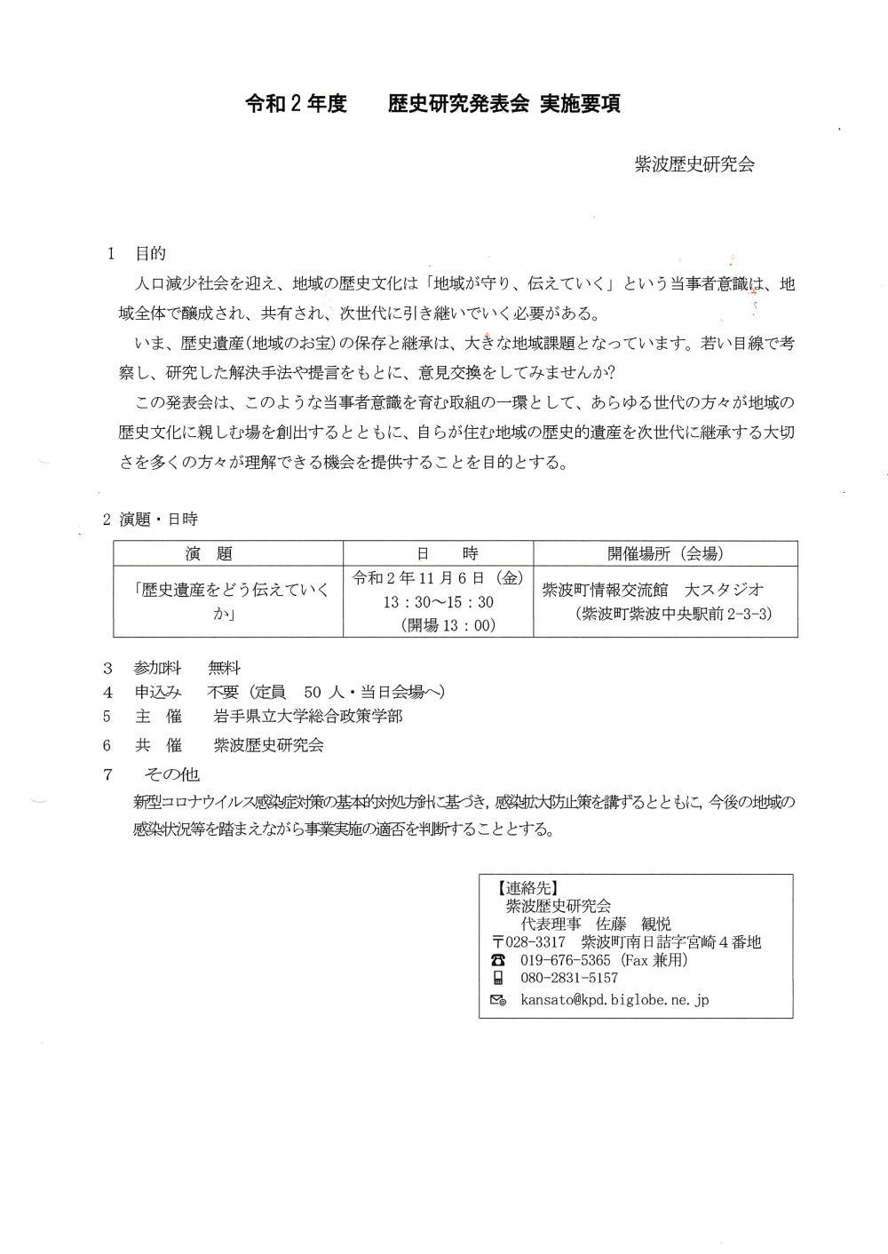 ①令和2年度第1回歴史講演会実施要項