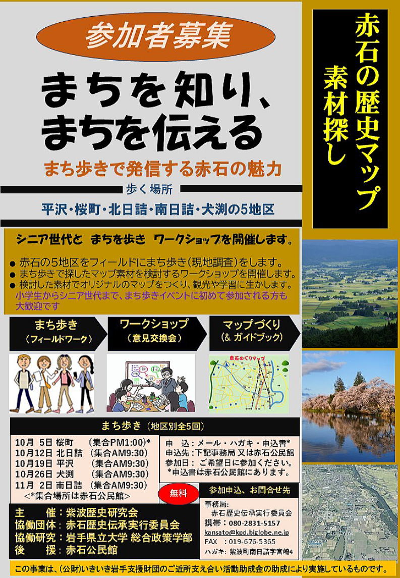 ついては、赤石のまちあるきをして、魅力発見と次世代に伝えるものを探してみませんか?
