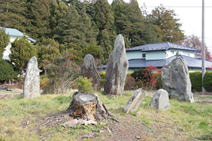 五郎沼の北岸の小高い場所に10 基ほどの石卒塔婆が林立している。板石塔婆あるいは単に板碑と呼ばれる供養碑である。一群の中には年号の入った絵像碑では県内最古の板碑がある。自然災害や戦乱に始終した中世は、誰にとっても先の見えない不安に満ちた時代であった。板碑は死者の供養や自身の極楽往生を願って寺院境内や道路の辻などに造られた。板碑は土地の歴史的年輪といわれる。そこに刻まれたわずかの文字は、地域の歴史や当時を生きた人々の生と死に対する深い思いや願いを無言で伝えてくれる