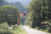 遠山青麻神社は、国道396号線沿いの道の駅「紫波」の近くに位置する。両部鳥居や長い石段、奥深い広?な境内地は独特の神域感を感じさせる。有数の果樹生産地帯である赤沢は、かつては隣接する佐比内とともに産金の中心地であり、産金鎮護を祈願する多くの寺社が集積する聖地でもあった。社名の青麻(=青苧)は、日本列島の山野に自生する苧麻という植物から取り出した繊維で、苧とも呼ばれる。同社は、「中風除け」にご利益があることで知られ、藩政時代は講が結ばれ参拝者が多かった。