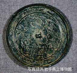 銅秋草双雀鏡(県指定文化財)