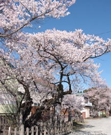 桜並木となっている長い参道は、春になると古木のヒガンザクラが咲き誇る。春彼岸の頃に花を咲かせるヒガンザクラは、江戸彼岸・東彼岸ともいわれ、寿命が非常に長い。この神社が鎮座する桜町は、当地に住んだ桜町中納言が村内に桜を植えたことが地名の由来と伝わるが、水神に関係するかもしれない。参道入口の左側にある樹齢700年ともいわれる「南面の桜」には、古くから伝わる恋物語があり、「縁結びの桜」と刻まれた碑が建っている。この恋物語を素材に英語と日本語で書いた『ももかと桜の木』が出版されている。