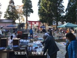 神社の現代的な活用 志和八幡宮の鳥居は、主柱を4本ので支えるが特徴である。境内にはユニークなが待ち構えている。まるでサングラスをつけたような狛犬である。志和八幡宮の境内では年に2回、地元有志が主催する「志和の市」が開催される。寺社は古くから文化サロンとして、地域コミュニティの核として機能してきた。寺社には信仰の場所であるという本来の意義を損なうことなく、地域活性の核として現代的な役割が期待される。蚤の市は地域の核である神社と地域住民を結びつける取組として高く評価される。