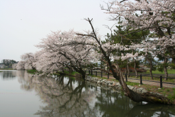 五郎沼は、滝名川上流河畔、志賀理和気(赤石)神社、高水寺城跡(城山)とともに桜の名所として知られる。花見客が行列をつくる名所ではないが、遠くに望む奥羽山脈や北上高地を借景とし、水面に枝垂れるように咲く桜の一群は自然の中に溶け込み、「桜のある原風景」を体感させてくれる。朝一番の風がなく水面が凪(な)いだ時に目にする満開の桜は、大自然の水面鏡となって水面に美しく浮かび上がる。その幻想的な光景は春の紫波町を代表するビューポイントであり、時間の流れを忘れさせてくれる癒しの空間でもある。