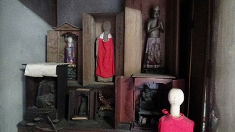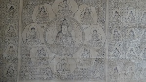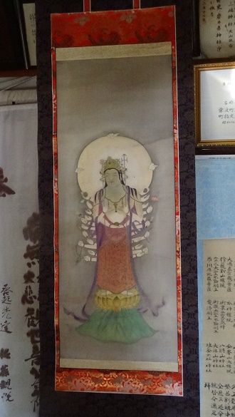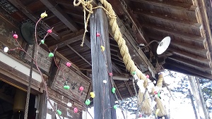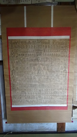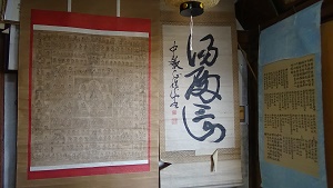 毎年1月16日は小正月として、お祝いをしております。普段は保管している掛図をつるして拝んでおります。